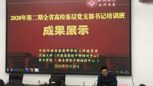 10月26日-29日,2020年第2期河南省高校基层党支部书记培训班在新乡先进群体教育基地举行,本期培训班为期4天,共有来自全省高校的143名教师党支部书记参加。suncitygroup太阳集团直属党支部书记张守仁参加培训班学习,他认真聆听了5位专家的精彩报告,并学习了12个高校微论坛的交流成果以及裴寨村和回龙村的现场教学,通过多样的培训形式进一步提升了教师党支部书记的政治理论水平,增强了党性修养和业务工作能力。