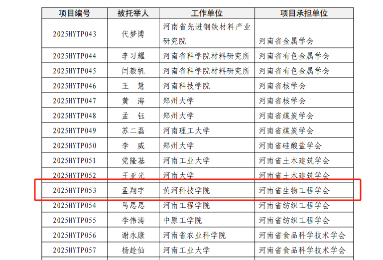 据悉,“河南省青年人才托举工程项目”是由省科协、省财政厅联合设立,以科研项目为依托,对优秀青年科技工作者进行跟踪培养,每年申报一次,2025年度河南省青年人才托举工程共有100个项目入选。